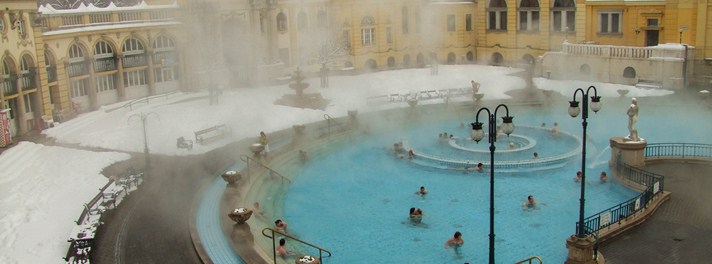 Termalbadet er fra slutten av 1800-tallet og framstår som en perle, spesielt ettersom det har gjennomgått en omfattende renovering de siste årene. Her er det tre utendørsbassenger med varmt vann, og du kan gjerne ta deg et parti sjakk når du først er i bassenget.